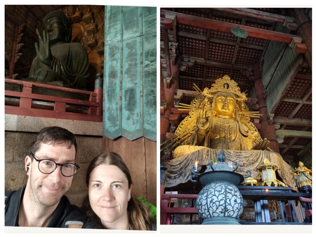 Temple Todai-ji dans la ville de Nara, avec le plus grand bouddha assis de 14m de haut. Il était très accueillant, avec ses doigts positionnés comme un accueil. Plus d’info ici : https://www.japan.travel/fr/spot/1009/