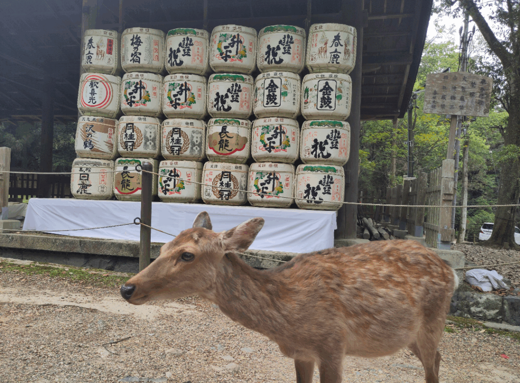 Il est possible et courant de faire des dons aux sanctuaires. Ici par exemple des tonneaux de saké :