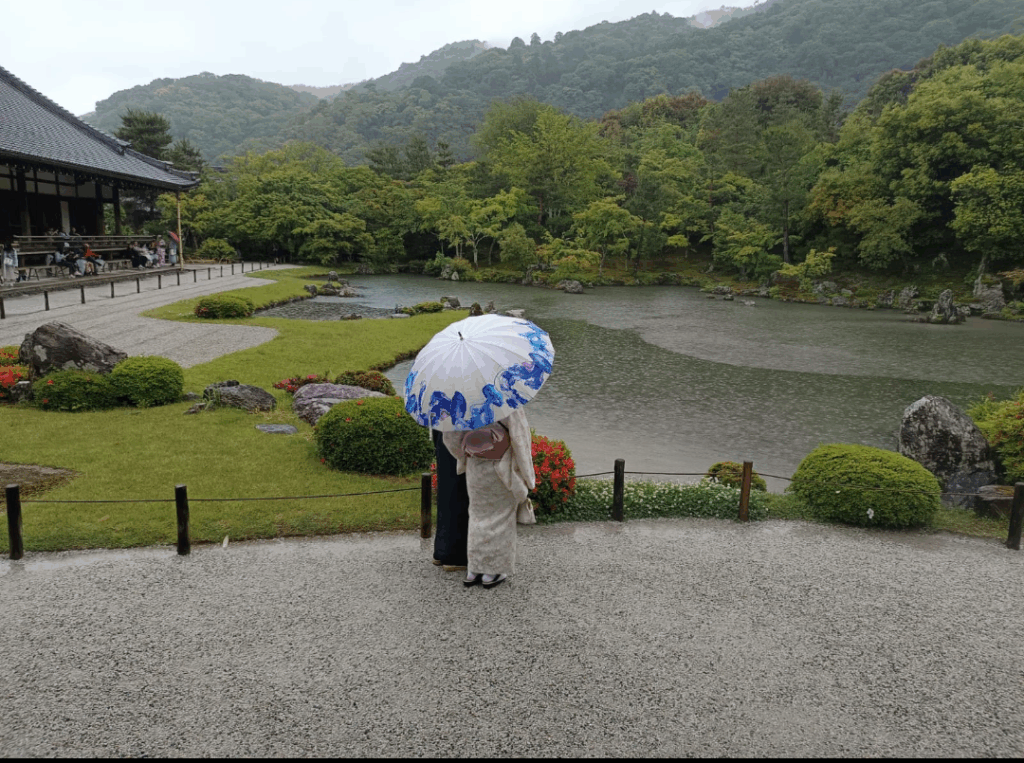 Après un déjeuner pas mémorable, direction Arashiyama et le temple Tenryû-ji. 70 % du Japon n’est pas habitable, très montagneux. La forêt de bambous est en fait une allée bordée de bambous. Nous nous sommes éloignés de la zone touristique pour apprécier le calme environnant.
